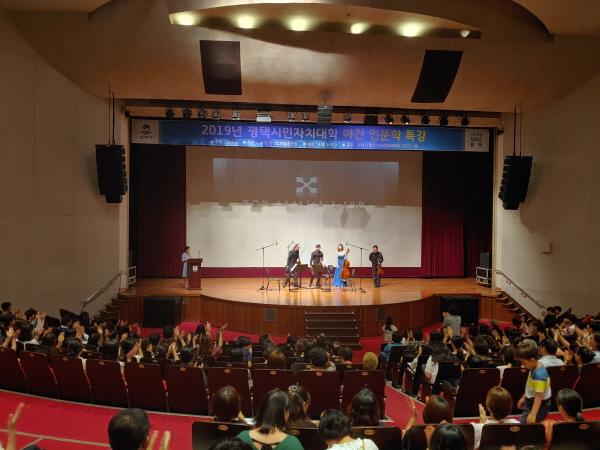 평택시는 지난 20일 남부문예회관 대공연장에서 평택시민자치대학 야간 인문학 특강으로 ‘콰르텟엑스와 함께하는 조윤범의 파워클래식’을 개최했다.