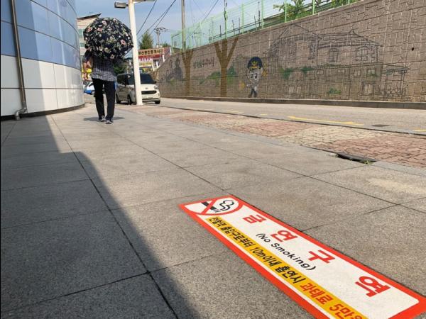 이에 구는 금연구역 범위 및 흡연 시 과태료 부과 규정에 대한 안내를 강화하고 흡연자의 흡연행위에 대한 경각심을 유발하기 위해 동인천역 북광장 버스정류장, 도원역 출입구, 동구보건소 진입로 등 4개소에 노면시트 11개를 제작해 부착을 완료했다.