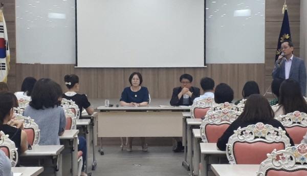 경기도의회 안전행정위원회 서현옥 의원이 지난 19일 평택상공회의소 대회의실에서 학생과 학부모, 평택교육지원청 관계자 등 90여명과 함께 용이중학교 정상화를 위한 긴급간담회를 개최했다.