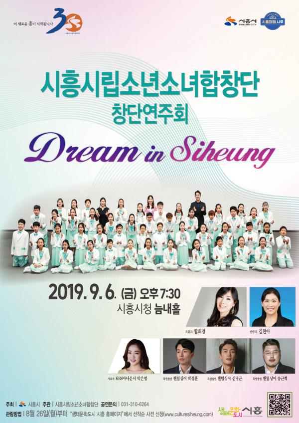‘드림 인 시흥’을 부제로 하는 이번 창단 연주회는 크게 3개의 무대로 구성됐다. 첫 번째 무대에서는 ‘라일락은 향기로 말해요’, ‘가을밤’ 외 2곡, 두 번째 무대에서는 ‘싱싱싱’, ‘슈거 타임’ 외 1곡, 세 번째 무대에서는 ‘꿈’과 관련된 곡들인 ‘너의 꿈을 펼쳐봐’, ‘우리는 꿈이 있어요’ 외 3곡을 노래한다.