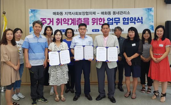 매화동 동네관리소 윤봉한 소장은 “양 단체 간의 적극적 협력을 통해 우리 동의 주요 복지욕구인 낙후된 주거환경 개선에 기여할 수 있기를 바란다”고 말했다.