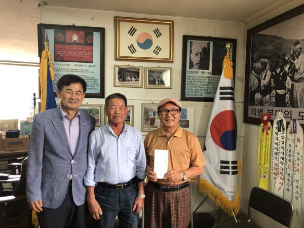 이에 권병열 흥천면장은 감사의 마음을 전하며 어르신과 동행한 가운데 ‘여주시 독립운동가 기념사업회’에 성금 100만원을 전달했다.