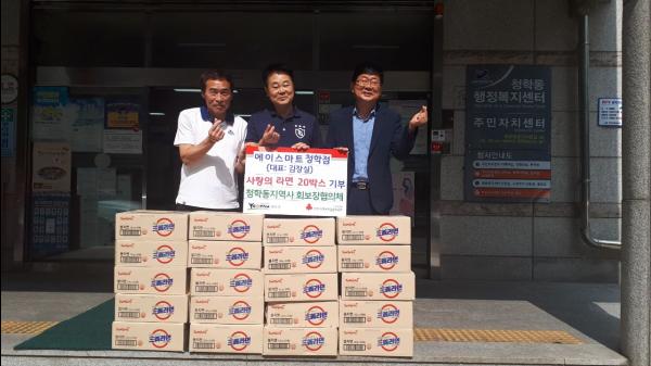 에이스마트 청학점은 지난 22일 관내 어려움을 겪고 있는 주민들에게 전해달라며 라면 20상자를 청학동지역사회보장협의체에 기탁했다.