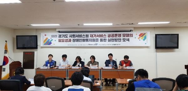 이날 토론회는 김철 서울 사회서비스원 이사의 발제로 김은주의원, 이명희 경기도사회서비스 시범사업단장, 신일범 경기도 사회서비스지원팀장, 이창균 장애인운동활동가, 고미숙 전국활동사지부 조직국장등이 참석하여 열띤 토론을 이어갔다.