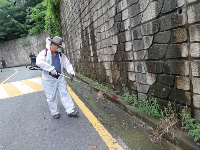 | 등교길 옹벽 잡초제거 <미디어 타임즈> |