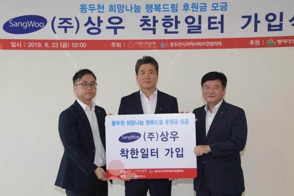 동두천시는 지난 23일 오전 10시에 공동모금회와 협업으로 진행하는 동두천‘희망나눔 행복드림’착한일터 가입식을 ㈜ 상우에서 실시했다.