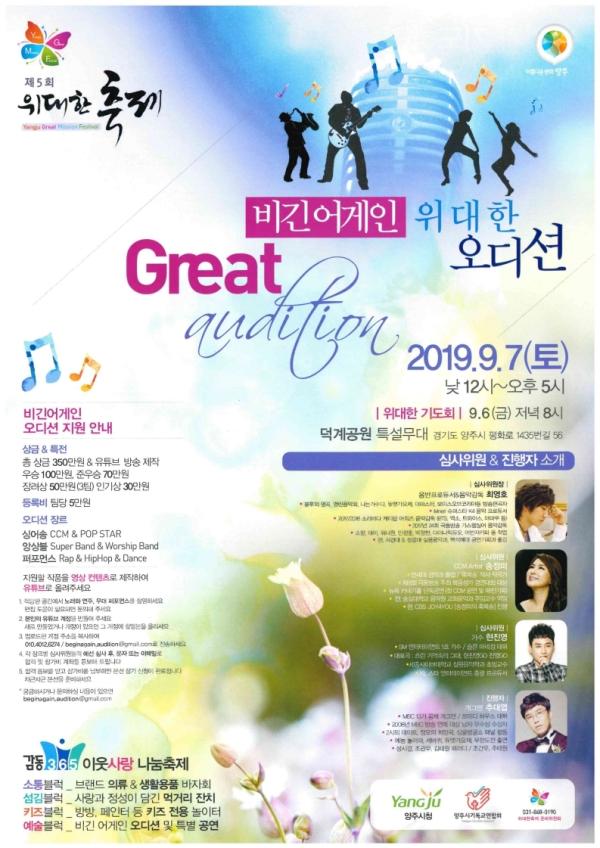 기타 축제, 오디션 관련 사항은 양주시 기독교 연합회문의하면 안내받을 수 있으며 공연은 무료이다.
