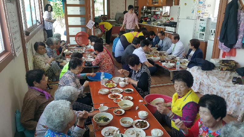 정량경로당 김명석 회장은 “우리 경로당은 평소 회원들끼리 사이가 좋아 시시때때로 함께 음식을 마련하여 식사도 같이 하고 건강 프로그램도 함께 하는 등 다른 경로당 부럽지 않게 즐겁고 재미있게 지내는 모범경로당이라고 생각한다.”며 특별한 자리를 마련해준 2016년 노인사회활동지원사업 참여 회원들에게 고마움을 표하였다.
