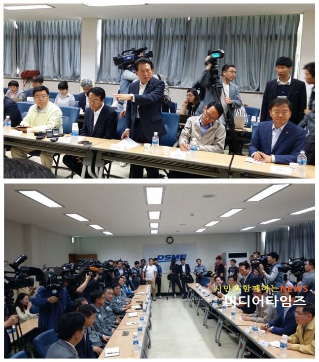 | 새누리당 원내지도부와 함께 대우조선해양에서 간담회 중인 김한표 의원 |