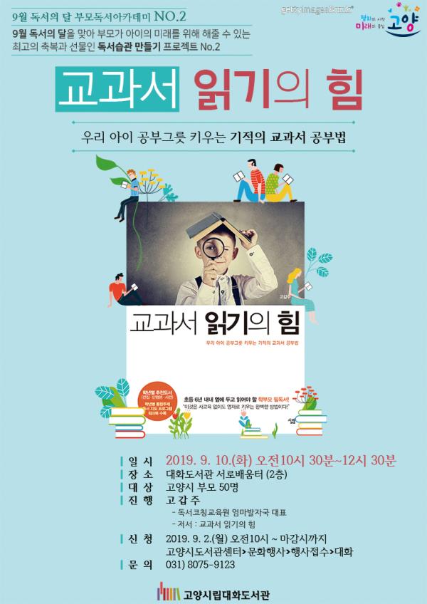 고양시 대화도서관은 9월 독서의 달을 맞아 부모가 아이의 미래를 위해 해줄 수 있는 최고의 축복과 선물인 독서습관 만들기 프로젝트 ‘부모독서 아카데미’를 개최한다.