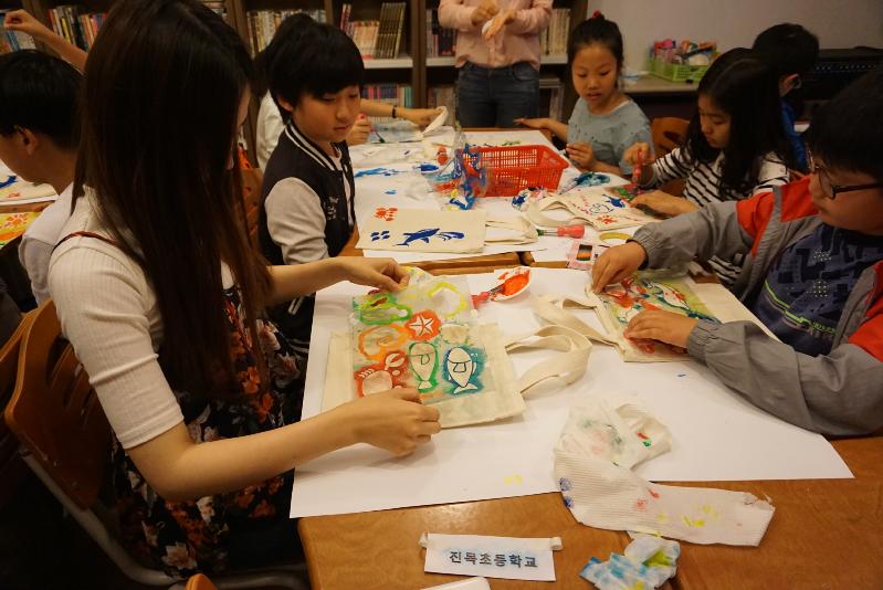 거제 海바라기 해양환경 진로체험학습은 거제청소년수련관의 주관으로 학생들에게 거제 해양환경을 이해하고 설명하는 체험형 학습형태로 이번에 진목초등학교에서는 스텐실을 이용한 해양에코백 만들기와 플랑크톤의 세계와 해양시료 채취, 한려해상국립공원과 몽돌의 생성과정 및 바람의 언덕의 해안구조에 대해 1~2개반으로 나뉘어 체험하는 체험형 학습이다.