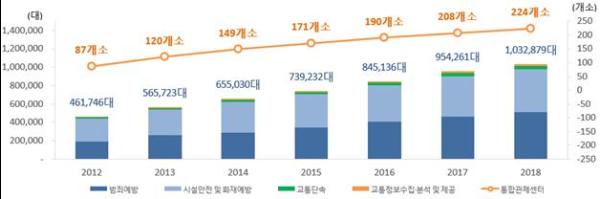 공공기관이 설치한 폐쇄회로 텔레비전은 103만 대로 전년대비 8.2% 증가, 처음으로 100만 대를 넘어섰다. 설치 목적별로는 범죄예방49.4%, 시설안전 및 화재예방 45.5%, 교통단속 2.9%, 교통정보 수집 분석 2.2% 순이다. 또한, CCTV의 효율적 운영과 사건사고에 신속한 대응을 위한 CCTV 통합관제센터도 전년대비 16개가 늘어난 224개소를 운영 중이다.
