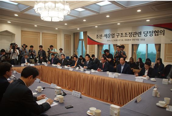 [미디어타임즈 = 최귀복 기자] 김한표 국회의원(새누리당, 경남 거제시)은 5월 24일(화) 국회에서 열린‘조선·해운업 구조조정 관련 당정협의’에 참석하여 기획재정부·산업통상자원부·고용노동부·금융위원회 등의 각 정부부처와 기업 구조조정 및 고용불안 문제를 타개하기 위한 정부지원 방안을 협의했다.
