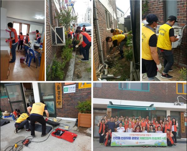 이날 실외 환경개선을 위해 화단 조성, 건물 벽면 및 창문 등 화사한 색으로 도색, 어르신들의 휴식공간을 위한 그늘막 및 벤치 설치, 낙상예방을 위한 출입구 경사로 설치 등을 실시하였으며, 실내에도 주방청소, 변기커버교체, 냉·온수 스티커 부착, 미끄럼 방지 매트 설치 등을 통해 경로당을 단장했다.