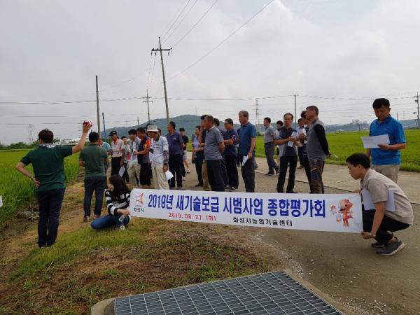 화성시농업기술센터는 지난 27일 농업기술센터 농기계임대사업소와 시범사업 현장을 순회하며 ‘2019년 새기술 시범사업 종합평가회’를 개최했다.