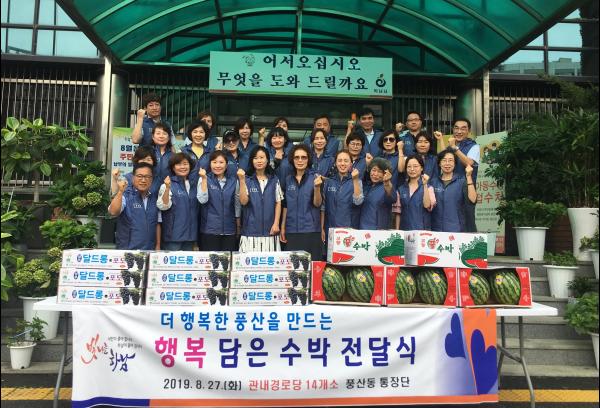 하남시 풍산동 통장단은 지난 27일 관내 14개소 경로당을 직접 방문하여 어른신에게 수박과 포도를 전달했다.