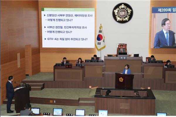 서울특별시의회 교육위원회 권순선 의원은 지난 27일 제289회 임시회에서 시정질문을 통해 “서울 서북부 지역이 각종 개발 사업으로 인해 늘어난 폭발적인 교통량과 유동인구를 통일로, 지하철3호선 하나로 감당하고 있다.”며, “신분당선 서북부연장선과 서부선 경전철이 조기 착공되어 서울 서북부지역의 혼잡교통이 개선될 수 있도록 해야 한다.”고 지적했다.