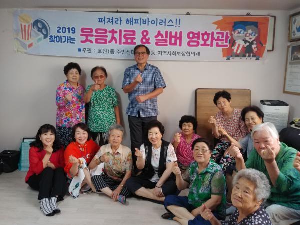 호원1동 주민센터와 동 지역사회보장협의회는 지난 26일 호원동 우성 1차 아파트 경로당에서 어르신 10여 명을 대상으로 웃음치료 및 실버영화관 상영을 진행했다.