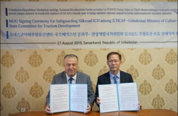 문화재청의 후원을 받는 유네스코아태무형유산센터는 지난?27일?우즈베키스탄?문화부와 관광개발국가위원회와?실크로드?무형유산?보호와?증진을?위한?포괄적?업무협약을?체결했다.