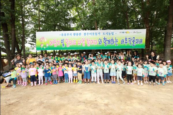 지난 27일 어린이 130여명과 근로사업 참여자 50여명이 함께 참여해 오류IC 어린이 도시농업체험장에 5,000본의 배추 모종을 심었다. 이후 3개월간 공공·지역공동체 일자리사업 참여자들이 밭 관리를 돕는다.