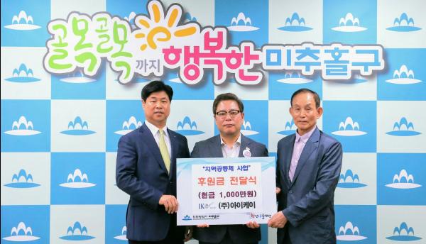 인천 미추홀구는 ㈜아이케이에서 학산나눔재단에 현금 1000만원을 기탁했다고 28일 밝혔다.
