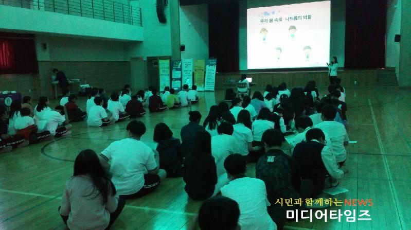 | 송도중학교에서 실시된 싱겁게 먹기 교육. |