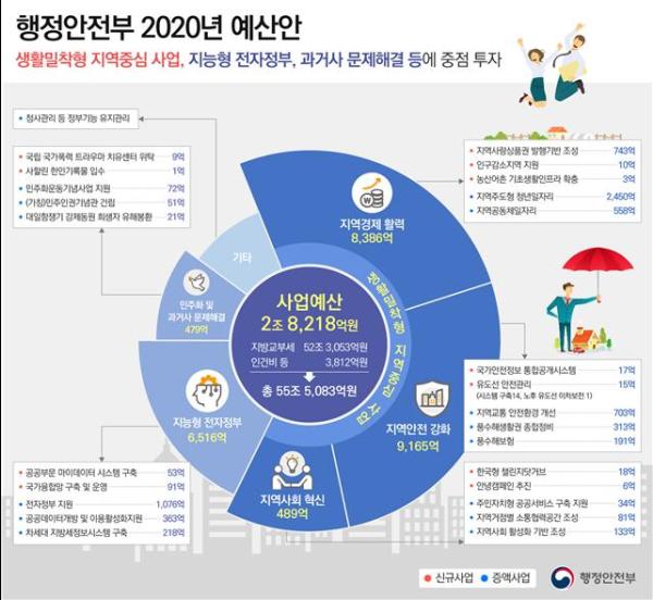 정부는 2020년도 행정안전부 예산으로 55조 5,083억원을 편성했다.