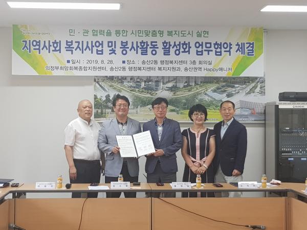 의정부시에서 위탁 운영하고 있는 노숙인복지시설인 의정부시희망회복종합지원센터는 지난 28일 지역사회 복지사업 및 자원봉사활동의 활성화를 위해 송산2동행정복지센터 복지지원과 및 송산권역 Happy매니저와 업무협약을 체결했다.