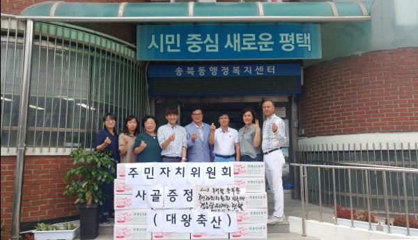 평택시 송북동 주민자치위원회 임영혁 위원은 29일 추석을 맞이하여 경로당 어르신을 위한 사골 뼈 200kg을 송북동행정복지센터에 기부했다.
