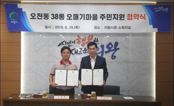 의왕시는 29일 시청 소회의실에서 관내 오전동 38통 오매기마을과 주민지원 협약식을 가졌다.