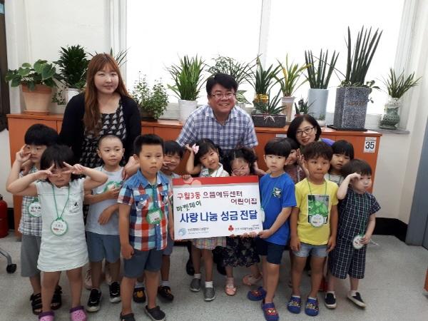 인천 남동구 구월3동이 지역 내 으뜸에듀센터어린이집으로부터 지역의 어려운 이웃을 위해 써달라며 이웃돕기 성금 25만 여원을 전달받았다.