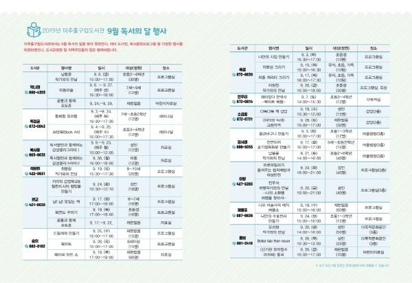행사에 대한 자세한 사항은 미추홀구립도서관 홈페이지 또는 각 구립도서관에 문의하면 된다.