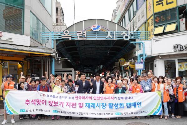 인천 연수구청은 저소득 노인의 따뜻한 추석맞이를 지원하고 지역경제를 살리기 위해 29일 옥련시장에서 추석맞이 장보기 및 재래시장 활성화 캠페인을 펼쳤다.
