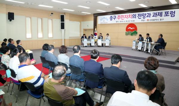 인천 중구는 지난 28일 중구청 월디관 대회의실에서‘중구 주민자치의 전망과 과제’라는 주제로 중구 주민자치회 활성화 방안을 모색하는 포럼을 성황리에 개최했다고 밝혔다.