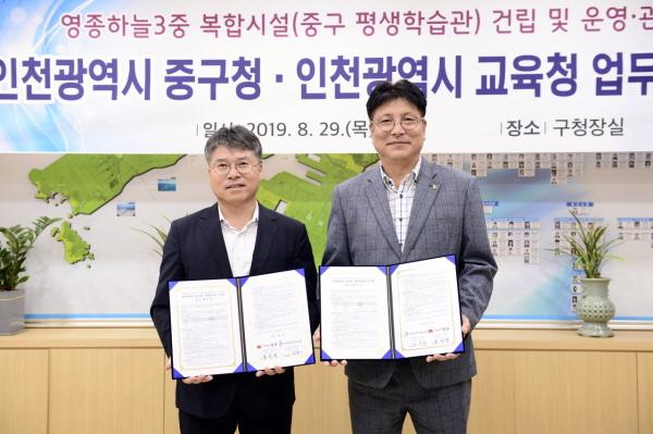인천광역시교육청은 29일 중구청과 ‘영종하늘3중 복합시설 건립 및 운영·관리’를 위한 업무 협약을 체결했다.