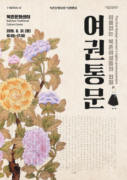 서울시와 문화다움은 오는 31일 북촌문화센터에서 우리나라 최초의 여성 인권선언 ‘여권통문’ 발표 121주년을 맞아 ‘이름 없는 북촌 여성들의 외침, 여권통문’ 특별행사를 개최한다.