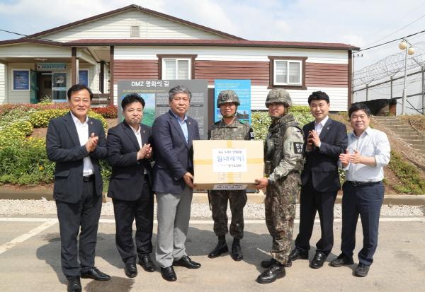 이날 오후 송한준 의장은 강원도 철원군 화살머리고지 감시초소를 현장 방문해 육군 제5사단장 이상철 소장을 격려하고 육군5사단 공병부대 장병 70여 명에게 빵과 음료 등 격려물품을 전달했다.