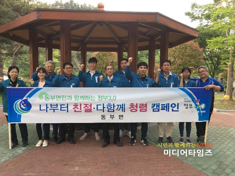 [미디어타임즈 = 최귀복 기자] 거제시 동부면(면장 공봉은)은 지난 23일, 업무 마감 후 오망천 소공원에서 직원 친절교육 및 청렴 캠페인을 실시했다.