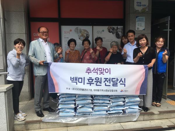 ㈜다다마을 관리소는 추석을 맞아 지난 29일 시흥시 대야동 관내 저소득층을 위한 백미 전달식을 진행했다.
