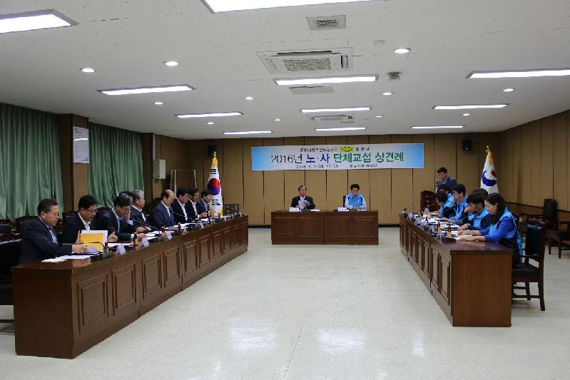 [미디어타임즈 = 최귀복 기자] 통영시공무원노동조합(위원장 정상교)과 통영시(시장 김동진)는 지난 24일, 시청 회의실에서 노조측 교섭위원 8명과 통영시 측 간부공무원 10명이 참석한 가운데 노·사간 단체협약을 위한 상견례를 가졌다.