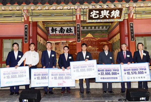 이날 회의 중 ㈜SKC, ㈜IBK 기업은행 동수원지점, JCI 수원청년회의소, 농협중앙회 수원시지부·수원농협·수원축산농협·수원원예농협·농협수원유통센터, 수원시체육회, 수원시상인연합회가 수원화성문화제추진위원회에 기부금을 전달했다.