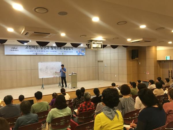 ‘문학 속의 철학’을 주제로 한 이번 강좌는 120명의 시민이 참여를 신청해 처음 기획했던 문화강연실이 아닌 소극장으로 옮겨 강좌를 운영했다. 폭염 속에서도 8차동안 진행된 강좌에 회차별 70여명의 시민이 참여해 총 560명이 함께했다.