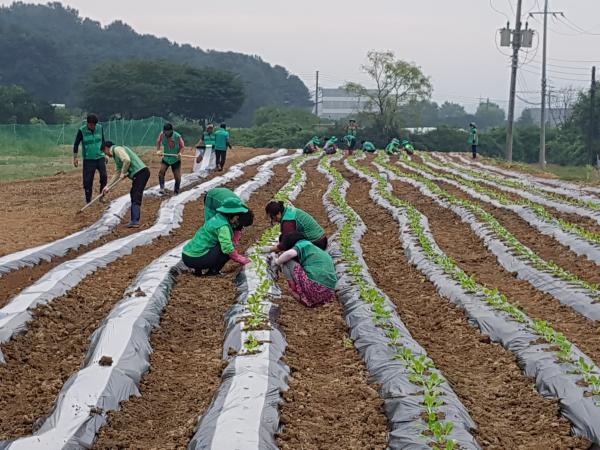 호법면 새마을남녀지도자협의회는 지난 24일 호법면 단천1리에서 남녀지도자 등 40여명이 참석한 가운데 이웃돕기 사랑의 배추심기 행사를 진행했다.