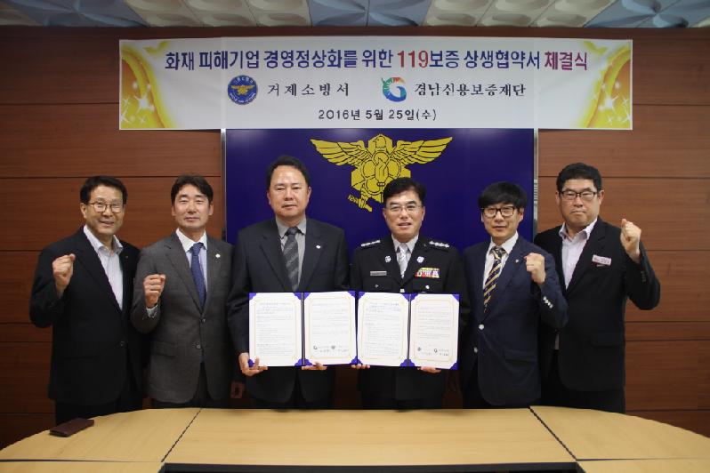 이번 협약으로 거제소방서는 화재피해기업 중 지속적인 경영의지가 있는 기업을 재단에 추천하고, 재단은 화재피해기업에 대한 긴급 신용보증을 지원한다.