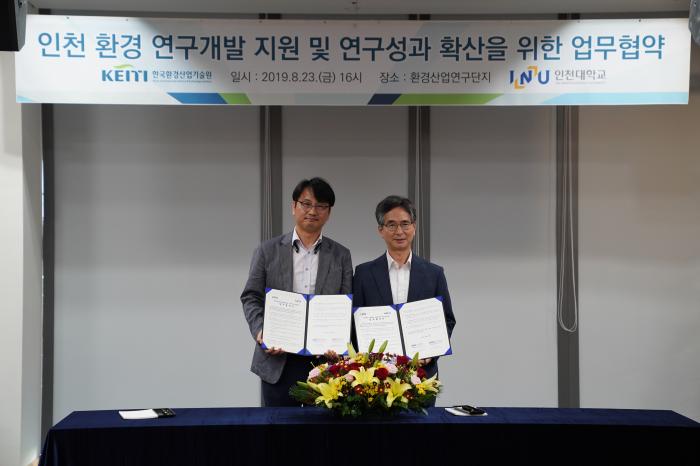 한국환경산업기술원(원장 남광희)과 인천대학교 산학협력단(단장 옥우석)과 23일 인천 서구 환경산업연구단지에서 인천지역의 환경연구개발을 지원하고 연구성과를 확산하기 위한 업무협약(MOU)을 체결하였다.