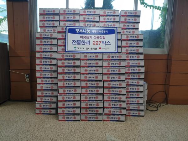 평택시 진위면 은산리 소재 ㈜정다운 식품은 지난 28일 추석을 맞아 저소득 어르신들에게 전통한과 227박스를 기부했다.