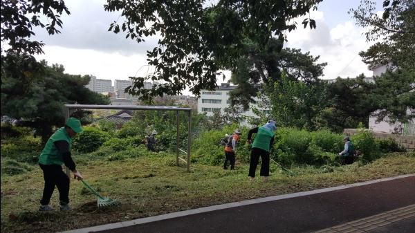 이날 회원 40여명은 3개조로 나누어 순조로운 예초작업을 위해 풀 속에 버려진 빈병 등을 줍고 무성한 잡초를 예취기로 제거하며, 로타리 풀을 세심하게 뽑는 등 환경정비를 실시했다.