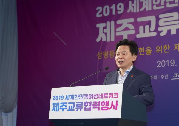 원희룡 지사는 이날 오전 제주난타호텔에서 열린 ‘2019 세계한민족여성네트워크 제주교류 협력행사’에 참석해 이같이 말했다.
