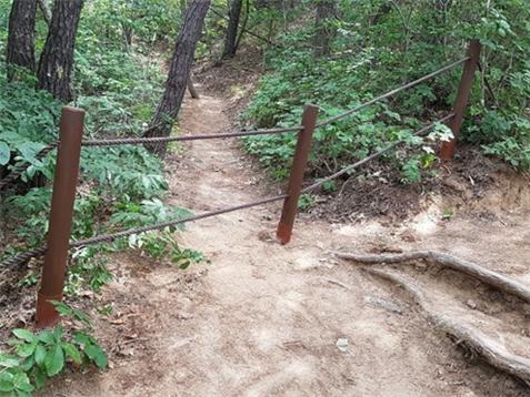 경주국립공원 등산로 외 샛길을 막아 놓았다. <미디어 타임즈>