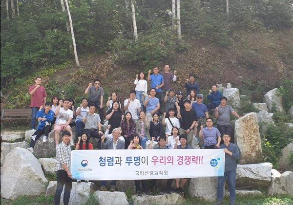 국립산림과학원 목재이용연구부에서는 지난 8월 30일에 강원도 원대리의 자작나무 숲에서 자작나무의 깨끗한 수피처럼 청렴한 공직사회를 위한 ‘반부패.청렴실천 및 갑질근절 캠페인’을 전개했다.